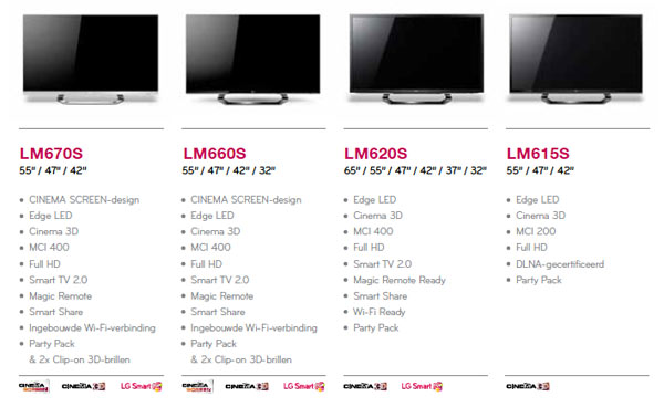Hieronder vind je een overzicht van de LG LCD TV line-up voor 2012.