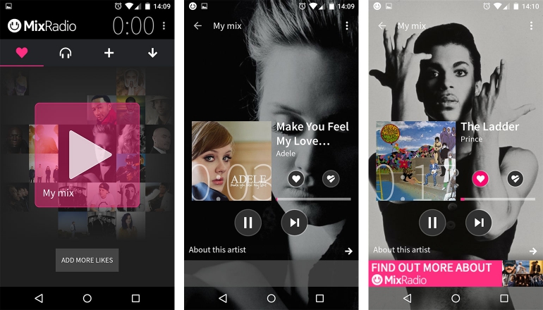 Door die verkoop werd MixRadio uiteindelijk een applicatie die je nu ook op Android en iOS vindt, die je gratis kunt gebruiken. Het is geen standaard muziekstreamingdienst zoals Spotify, Google Play of Xbox Music, maar concentreert zich eigenlijk op één aspect van die diensten: radio. En dan niet radio in de traditionele zin, maar in de moderne: je laat aan de app weten waar je graag naast luistert en de app zoekt daarbij verwante nummers.