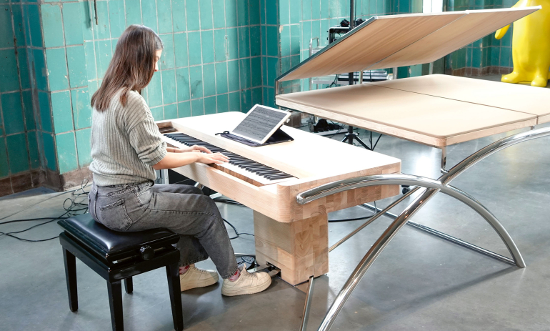 “De vraag was of de piano een discriminerend instrument is. In eerste instantie hoe de piano mensen met smallere handen discrimineert. Dat leidde tot een onderzoek hoe de piano ontstond in de huidige vorm. Vervolgens ontdekte ik enkele trends in de richting van vrouwen. In eerste instantie was de piano een instrument voor vrouwen. Het instrument was ontworpen om een soort ornament te hebben in huis. Sommige piano’s hadden ook de dubbelfunctie als handwerktafel of kledingtafel en diende dus als werkruimte voor vrouwen. De piano stond in de salon, er kwam bezoek en vrouwen speelden daarop als zijnde achtergrondmuziek. De zithouding maakte ook dat de persoon achter de piano er vrouwelijk (ladylike) uit zag. De piano maakte deel uit van hoe vrouwen werden opgeleid. Op de piano spelen was een deel van hun educatie, samen met literatuurstudie. Piano’s werden vervolgens groter, er kwam een metalen frame en dikkere snaren. Componisten begonnen vervolgens meer virtuoze muziek te schrijven. Daarmee werd het een instrument voor mannen, want men dacht dat vrouwen niet van die virtuoze stukken konden spelen. Het vergde veel emotie en kracht. Spelen en componeren veronderstelde ook het hebben van logica, waarvan werd gedacht dat vrouwen die niet hadden. Er waren dus nauwelijks vrouwelijke componisten. Voornamelijk mannen componeerden dus muziek voor andere mannen. Het Parijse conservatorium maakte een verschil tussen mannen en vrouwen. Het waren gescheiden klassen met gescheiden repertoire. Kritieken in die tijd op uitvoeringen hadden een toon van …ze speelt goed, gezien het feit dat ze een vrouw is…, beter voor Bach en Mozart, maar voor Beethoven mist ze de power. De breedte van de pianotoetsen stond vast, aangepast aan de grotere mannelijke hand. In de tijd van Bach en Mozart had je wel harpsichords en fortepiano’s met smallere toetsen.”