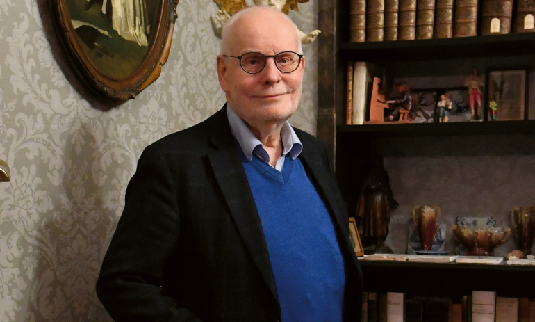 “Als jongetje begon ik in het knapenkoor van de katholieke Sint-Michaëlskerk. Er was daar een geweldige amateurorganist die met handen en voeten kon spelen. We zongen Bach en Handel met de feestdagen en dat vond ik zoveel mooier dan andere muziek. Als zesjarige, ik kon nog geen letter lezen, kwam die muziek binnen. Mijn vader was amateur jazzmusicus en we waren een katholiek gezin met zeven kinderen, die het niet rijk hadden. Mijn moeder was ziek en het was wat om een zoon naar pianoles te sturen. De dirigent van het kinderkoor zei dat ik talent had en naar pianoles moest. Mijn vader was niet in staat om dat te betalen en er werd gesuggereerd om naar de gemeente te gaan om hulp te vragen. Ik bleef tot mijn dertiende jaar op het koor, maar ondertussen was ik al organist. Op de lagere school hadden wij les van de fraters van Tilburg. Sommigen waren muzikaal en er werd veel gezongen. Bij het koor, waar ik steeds bij die organist stond, werd het duidelijk dat ik toch een beetje kon spelen. Bij die fraters werd ik organist in een heel klein kapelletje met een heel klein orgel. Had daar geen les in, maar de pianoles ging heel snel. Ik werd elk jaar beloond met een boek over orgelbouw. Ik wilde orgelbouwer worden. Hoe ik dat bedacht heb weet ik niet want ik was a-technisch. In Zwolle had je het grote Schnitger-orgel, dat nu gerestaureerd is, dus het interesseert me nog steeds. Toen ik dertien was vroeg een dirigent van een kamerkoor of ik organist wilde worden in Almelo. We betalen je reis en veertig gulden voor een maand werken. Dat was geweldig en ik begon toen met boeken te verzamelen. Vervolgens werd ik door een andere kerk gevraagd en daar kreeg ik een mechanisch orgel. Daar bleef ik tot mijn zevenentwintigste en heb daar elke zondag gespeeld. Toen kwamen de elektrische gitaren en dacht nu moet ik er uit. Daarna ben ik nooit meer kerkorganist geweest. Soms in een dienst als vrienden van mij trouwden. In mijn verdere loopbaan waren er op zondag uiteraard concerten waar je beschikbaar moet zijn. Zo is het dus begonnen en ik ging ook muziek overschrijven en componeren toen ik mijn eerste vriendinnetje had. Allemaal in barokstijl en nooit modern.”