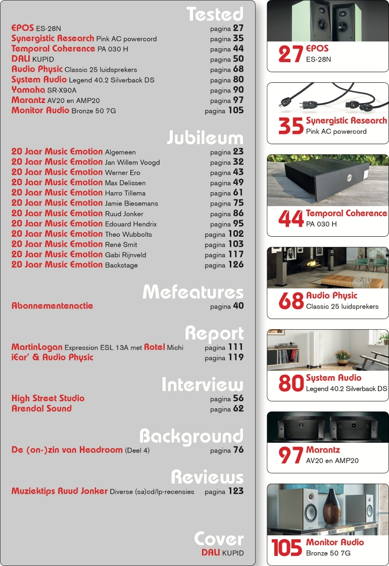 20 Jaar Music Emotion! Een mijlpaal in de geschiedenis van het vakblad voor audio/video, hifi, high-end, home theater, surround en software. Een mijlpaal die we niet zo maar voorbij willen laten gaan.