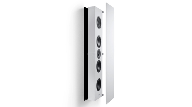 Om de Atelier 9’s te testen, hangen we ze op links en rechts van een Sony XR-65A95K die op de muur hangt. De testopstelling is esthetisch niet zo perfect: we hangen de Cantons aan schroeven die al aanwezig zijn van bestaande muurspeakers. Ze hangen misschien enkele centimeters lager dan optimaal, maar de zetels in de werkruimte zijn ook echte low-riders. Dus dat komt wel goed uit. Maar door de iets lagere positie hangen ze net naast het AV-meubel onder de tv, waardoor we de optionele frontjes niet kunnen monteren. Maar om de geluidsprestaties te beoordelen is dat geen probleem.