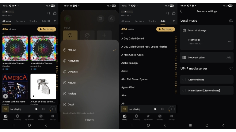 De DALI’s en de ELAC-sub vormden samen een geweldig systeem, waarbij de MD-1P de tracks op ‘Out of Exile’ van gitaarsupergroep Audioslave met heel veel drive en opwinding de kamer in duwde. Bij deze soort nummers is snelheid echt belangrijk, en dat levert deze kwieke Matrix Audio met overtuiging. Het maakte voor een zeer geslaagde reis naar het verleden, om weer eens te genieten van de vlijmscherp neergezette stem van wijlen Chris Cornell en de unieke sound van de RATM-muzikanten. Bij een track als ‘The Worm’ viel meteen de invloed van Tom Morello te bespeuren. Fijn gebracht ook, die kenmerkende gladde hoge noten op de elektrische gitaar.