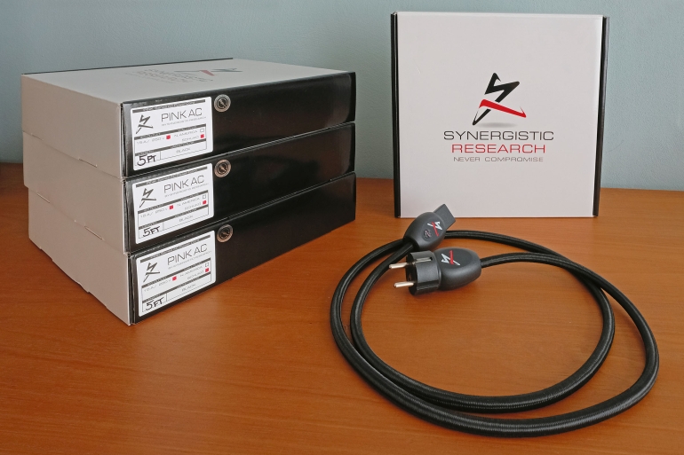 Ja, het effect van een stroomkabel is voor sommigen een veel bevochten onderwerp. Deze mensen zijn van mening dat het tussen de oren zit. De meesten hebben inmiddels echter positieve ervaringen met een kwalitatief betere stroomkabel opgedaan. Ikzelf ben van mening dat er met het veranderen van zoiets simpels als een stroomkabel in de keten heel goede dingen met het geluid kunnen gebeuren. Maar, de totaalsom van verschillen is niet automatisch een verbetering, heb ik door de jaren ervaren. Ik ben dus erg benieuwd naar de prestaties die mijn set levert wanneer ik mijn eigen bekabeling vervang door de Pink AC powercord van Synergistic Research.