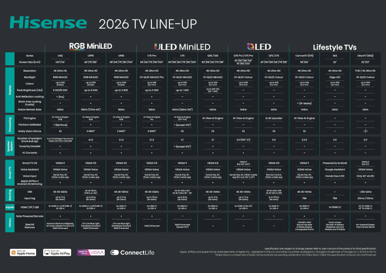 Naast de standaard line-up introduceert Hisense nieuwe Lifestyle-tv’s, waaronder de DécoTV (S5Q) en de CanvasTV (S75). Deze modellen zijn ontworpen om op te gaan in het interieur, met opties zoals een ultraslanke muurbevestiging, verwisselbare lijsten en een Hi-Matte display.