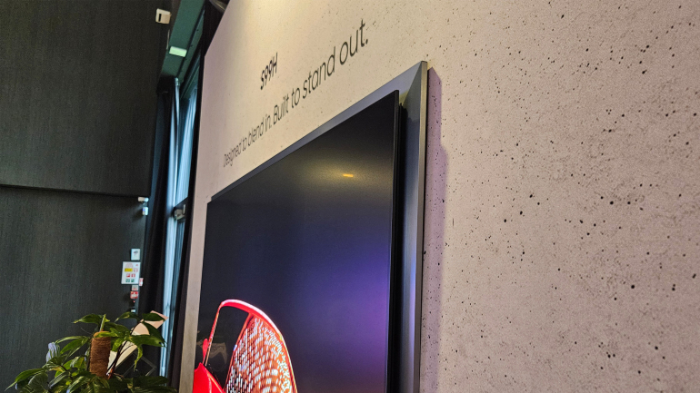 De toppositie wordt ingenomen door de S99H. Dit OLED-model krijgt een exclusief ontwerp (Floatlayer Design), waarbij een breder aluminium rond het scherm zit. Het scherm hangt bovendien visueel voor het kader zodat het lijkt te zweven. De tv kan vlak tegen de muur gemonteerd worden, zonder zichtbare ruimte tussen muur en tv. De Wireless One Connect, vorig jaar geïntroduceerd op The Frame Pro waarbij je alle aansluitingen op een box vindt die draadloos met de tv communiceert, is beschikbaar als optie op de S99H. Dit model krijgt ook toegang tot de Art Store, en met zijn alu kader ziet hij er inderdaad als een knappe kandidaat uit voor een kunstkader.