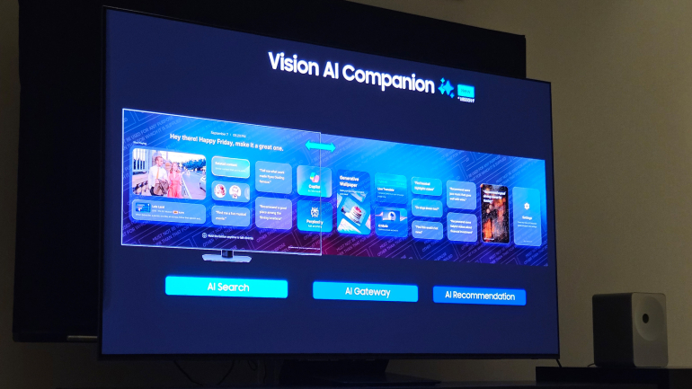 AI mag uiteraard bij niemand ontbreken. Ook Samsung zet er duidelijk op in. De Vision AI Companion is een specifiek deel van de smart tv-omgeving waar je in terecht komt als je op de AI-toets op de afstandsbediening drukt. Samsung zet er heel wat AI-functies samen, van generatieve wallpapers tot de typische vragen die we aan chatbots stellen. Copilot en Perplexity zijn aanwezig als apps. En AI wordt nu ook ingezet om nieuwe content te vinden. Hoe handig dat allemaal werkt, zullen testen moeten uitwijzen.