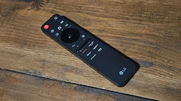 Afstandsbediening: De vernieuwde afstandsbediening is een stap in de juiste richting maar kan nog wel wat verbetering gebruiken. Zo vinden we het jammer dat LG niet voor een oplaadbare batterij koos. De organische vorm werd geruild voor een klassiekere rechthoekige look. De cijfertoetsen zijn geëlimineerd, dat lijkt logisch, ze blijven beschikbaar via een optie-toets. Dat volume- en kanaaltoetsen nu kanteltoetsen zijn is ok, maar dat je de mute-functie enkel kunt activeren door de volumetoets lang naar beneden te drukken, is lastig. Ook het verdwijnen van de ingangen-toets is niet optimaal, je kan de ingangen tonen door de Home-hub toets (links bovenaan) lang in te drukken. De centrale ok-toets vereist flink wat druk, dat mag lichter voor een aangenamere ervaring.