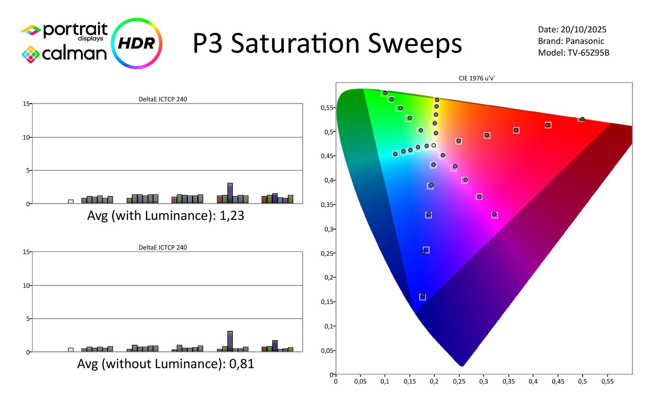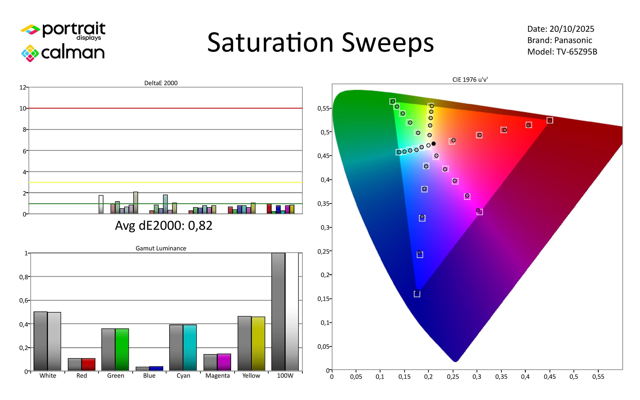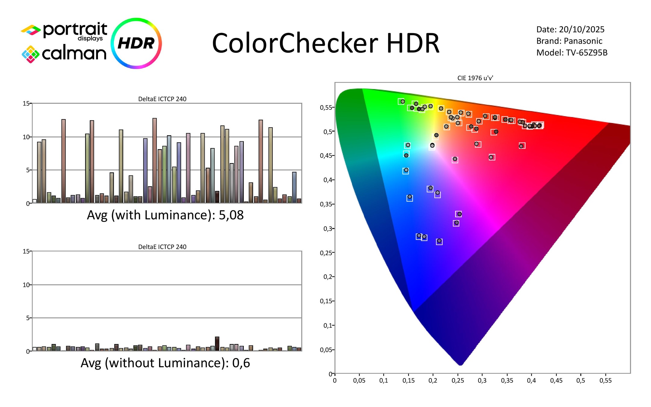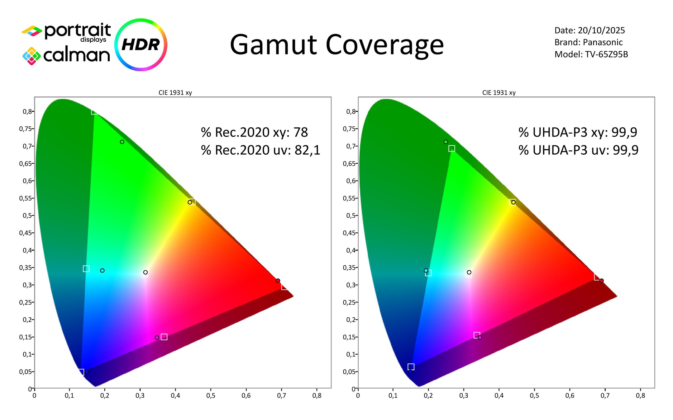 Net als de LG G5 en Philips OLED950 profiteert de Z95B van het zeer ruime kleurbereik van het nieuwe OLED-paneel. De scores van 78% Rec.2020 en 100% P3 zijn fantastisch, en daarmee kan hij HDR-beelden prachtig weergeven. De Z95B ondersteunt HDR10+ Adaptive en Dolby Vision IQ zodat je altijd de beste HDR-versie krijgt die beschikbaar is.