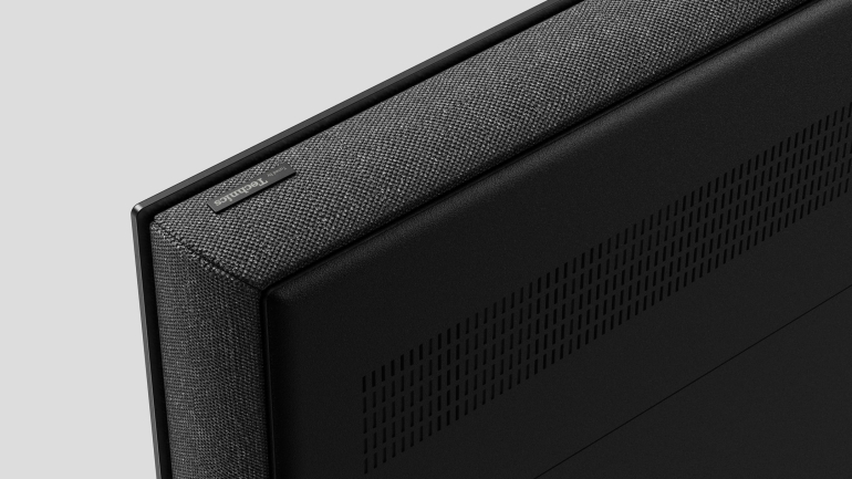 Design: De typische sober Panasonic stijl heeft toch een tikje stijl gekregen. De stoffen afwerking van de luidsprekerbalk onderaan, en vooral die van de in de zijkant en bovenzijde verborgen luidsprekers geeft hem echt een mooi uitstraling. Hij staat op een draaivoet, altijd een prima keuze, en met een profiel van amper 52mm is hij nog redelijk slank.