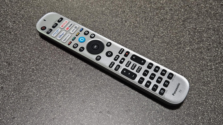 Afstandsbediening: Panasonic is ondertussen bijna het laatste merk dat nog steeds een grote, erg klassiek aanvoelende afstandsbediening gebruikt. De toetsen hebben een lichte aanslag, en de remote ligt goed in de hand. Omdat hij zo groot is, moet je voor sommige toetsen wel je hand verplaatsen. Er zijn zes sneltoetsen voor streaming apps, al is Amazon Music vermoedelijk niet erg nuttig. Wel bijzonder handig zijn de de ‘Picture’ waarmee je snel van beeldmode wisselt, en de ‘My App’-toets die je zelf toekent aan een app naar keuze.