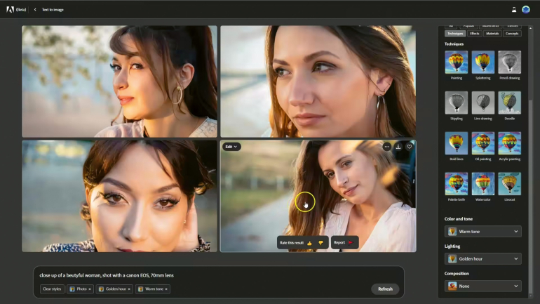 Met Firefly kunnen gebruikers verbluffende visuele beelden voor foto en video genereren met behulp van eenvoudige tekstcommando’s. Firefly stijgt uit boven het maar wat experimenteren met creatieve AI. Dit Adobe gereedschap kenmerkt zich door zijn professionele kwaliteit en integratie met vertrouwde Adobe-apps zoals Photoshop, Illustrator en Express. Een welkom veelzijdig stuk creatief gereedschap voor de foto/videograaf.