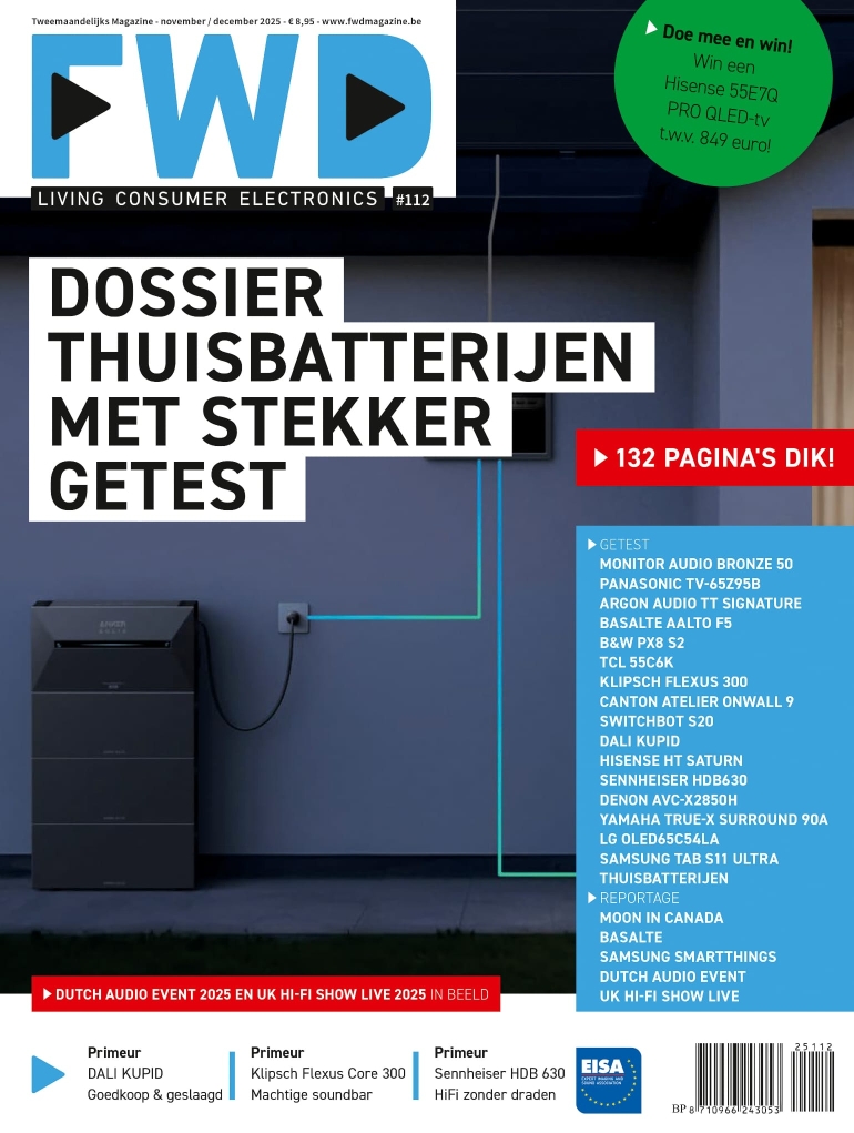 Is dat alles? Zeker niet! Een reportage van een luistersessie met bijzondere MartinLogan Expression ESL 13A-elektrostaten en Michi-versterking, een test van de Switchbot S20, en nog veel meer. Mis nummer 112 van FWD Magazine dus zeker niet!