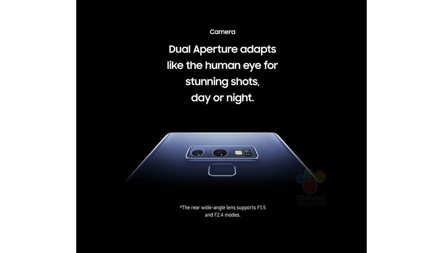 Op de afbeelding hierboven zie je dat die S Pen dus is voorzien van bluetooth en nieuwe manieren van bediening aanbiedt. Zo kan het pennetje worden gebruikt in combinatie met de foto-app, waardoor je snel foto’s kunt maken. Ook zit er een Dual Aperture-lens op de achterkant en zijn er toevoegingen voor de software gespot. Zo kan de Galaxy Note 9 laten weten wanneer een foto wazig is of wanneer iemand met z’n ogen dicht op de foto staat. Hieronder hebben we alle andere posters in het bericht gezet (via Winfuture).