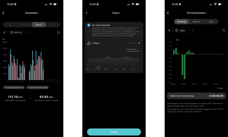 De software zelf is ook vooruitgegaan: de Nederlandse vertalingen in de app zijn sinds de laatste keer iets verbeterd, wat het gebruiksgemak ten goede komt. De AI-optimalisatie blijft het meest positieve punt en gaat slim om met dynamische energietarieven. Ook de handige back-up functie is nog steeds aanwezig, mocht je een keer zonder stroom komen te zitten.