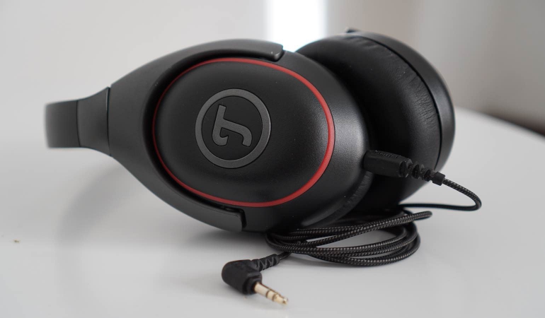 Het design oogt modern en heeft op een aantal punten best wel wat weg van de Beats koptelefoons die al jaren zo populair zijn. Het komt waarschijnlijk vooral door de combinatie tussen de zwart/rode kleurstelling en de grote T die die zijkanten van de oorschelpen siert. Kijk je van wat dichterbij en het is al snel duidelijk dat beide koptelefoons hun eigen karakter hebben en dus wil ik Teufel hiermee ook niet betichten van kopieergedrag. De Teufel Mute is een over the ear koptelefoon en dus vallen de oorschelpen volledig over je oren heen, dit is dus het type koptelefoon dat ik zelf altijd erg groot vind. De Mute is nog steeds best fors maar valt in de vergelijking met andere koptelefoons uit deze categorie best mee.
