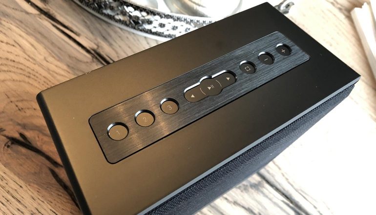 Het design is zoals gezegd wat veranderd ten opzichte van de voorgaande generatie. Over smaak valt natuurlijk te twisten, maar Teufel heeft de One S wederom van een premium ogend design voorzien. De speaker heeft deze keer een vierkante vorm meegekregen en is daarmee nog iets compacter geworden. De met rubber bedekte knoppen aan de bovenzijde zijn vervangen voor een stuk chiquer ogende touch-knoppen en ook het led-lampje aan de voorzijde heeft een make-over gekregen waardoor deze iets moderner oogt. Zowel aan de voorzijde als aan de zijkanten zien we zwarte stoffen bekleding terug.