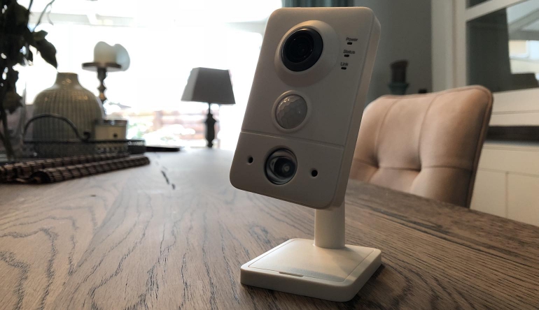 De binnencamera wordt op een plastic statiefje geplaatst en kan in principe horizontaal in elke richting gedraaid worden. Verticaal heb je een paar graden ruimte om te tilten, zodat je de camera op een kast kunt zetten. Het plastic statief is heel licht en dat zorgt qua plaatsing voor wat creativiteit. De camera is namelijk niet compleet draadloos en dus moet de stroomkabel altijd aangesloten worden. Mocht je gebruik maken van bekabeld internet, dan moet ook de ethernetkabel aangesloten worden. Deze kabels zorgen voor wat gewicht dat aan de lichte camera trekt waardoor hij soms van zijn plek schiet. Daarbij is de standaard meegeleverde stroomkabel wat kort (2 meter) maar via de webshop van WoonVeilig kun je een kabel van maximaal 10 meter aanschaffen.