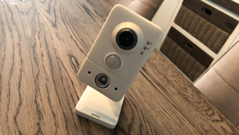 De HD Binnencamera hebben we op een kast in de woonkamer geplaatst, naast een camera van een concurrent (Logitech). Over de mogelijkheden en instellingen hebben we het hierboven al kort gehad. Je hoeft niets te verwachten qua detectievelden, tijdsplanning, etc. Maar, ook tegenwoordig veelgebruikte features als persoonsherkenning en geofencing zijn niet aanwezig. Het is een vrij eenvoudige camera die als onderdeel van je beveiligingssysteem fungeert en dus ook alleen zijn werk doet wanneer het alarm aanstaat. Mocht er een beweging gedetecteerd worden of het alarm afgaan door een andere sensor in huis dan wordt er automatisch een opname van een seconde of 30 gemaakt.