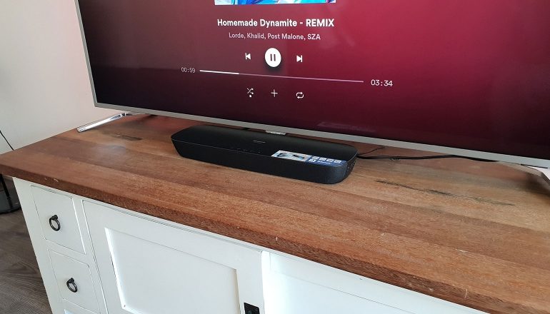 Zet je het geluid niet te hard en de instellingen niet te voluit, dan heb je tijdens het kijken naar films en series of tijdens het gamen een prima maatje aan de TV mate. We gebruiken zo’n soundbar ook dagelijks voor het beluisteren van muziek, maar daar is deze wat minder voor geschikt. Wellicht had de laagweergave beter kunnen zijn wanneer er een aparte subwoofer zou worden meegeleverd, maar dan had de prijs waarschijnlijk ook omhoog gegaan. Het is dus maar net waar je een soundbar voor zoekt: televisie of muziekbeleving.