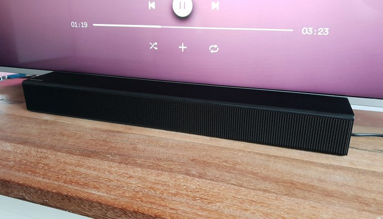 Of je het design van een soundbar nou mooi vindt of niet, dat is een kwestie van smaak. Panasonic heeft in elk geval een strak en compact vormgegeven soundbar op de markt uitgebracht die prima in staat is het geluid van de tv naar het volgende niveau te brengen. Daarbij plaatsen we wel dat je de Panasonic SC-HTB254 niet in elke kamer kunt plaatsen en dat-ie het beste tot z’n recht komt in kleinere omgevingen. Het geluid klinkt over het algemeen, ongeacht de kamer, gelukkig wel helder, verstaanbaar en fijn — op enkele situaties na dan.