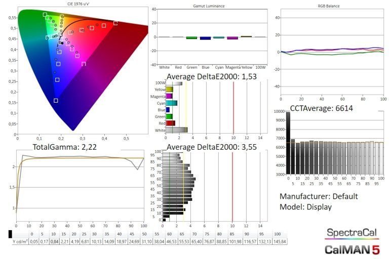 De X500E was goed gekalibreerd. De zwartwaarde is prima, met een uitstekend contrast als resultaat. De grijsschaal is mooi neutraal, en heeft een lichtjes te koele kleurtemperatuur (blauwe tint) wat weinig mensen zal storen. De kleurweergave is prima.