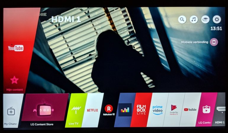 WebOS, het smart tv-systeem van LG is ondertussen aan versie 3.5 toe. De speelse maar erg handige interface blijft een van onze favorieten. In dagelijks gebruik vind je alles op het Home -scherm terug, dat de vorm neemt van een lint onderaan het scherm met iconen voor alle bronnen op het toestel, van live tv, tot externe ingangen en internet toepassingen.