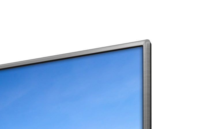 Dat zelfs budget televisies met een redelijk slank profiel en smal kader kunnen uitpakken heeft alvast een belangrijk voordeel. Omdat er zo weinig is om het toestel een echt eigen identiteit te geven, heb je zelfs met een bescheiden design inspanning al een mooi ogend resultaat. De afwerking is uiteraard volledig in kunststof maar is wel fraai. Het scherm is voorzien van een licht geprofileerd metaalkleurig kader, en de rug is afgewerkt in donkergrijs zonder een patroon, maar ziet er zacht uit, en zo voelt hij ook aan.