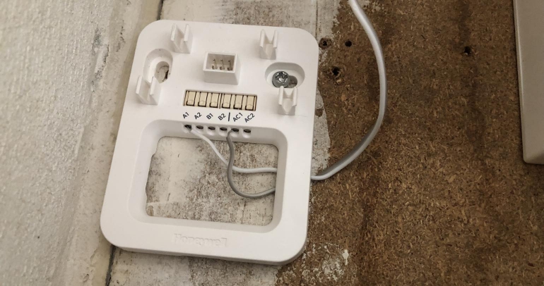 Als je het setje koopt zoals ik hierboven omschreef is het een kwestie van de (mechanische of elektrische) gong vervangen voor de omvormer van Honeywell. De handleiding van die omvormer is niet de meest duidelijke dus als je er echt geen verstand van hebt dan kun je een elektricien even om hulp vragen, maar in ons geval bleek het na even uitzoeken niet zo lastig. De mechanische deurbel die we hadden hangen hebben we weggehaald, het draadje dat van de transformator afkomt is op de AC1-aansluiting van de omvormer aangesloten en het draadje dat terugkomt van de deurbel is op de A1-aansluiting aangesloten. Je hebt ook nog de optie voor het aansluiten van een tweede deurbel, op de B-aansluitingen.