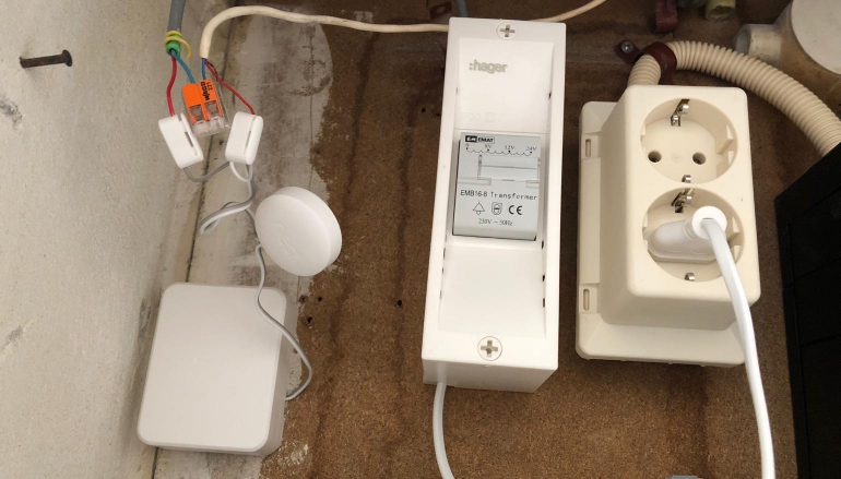 In onze zoektocht naar een oplossing kwamen we al snel terecht bij de draadloze chimes van Honeywell. Het bedrijf heeft er meerdere in het assortiment; van volledig instelbaar qua volume en met led-verlichting tot een simpele variant met vier melodieën en verder geen instelmogelijkheden. Deze modellen zijn niet specifiek voor de Hello gemaakt en worden dus ook met een eigen (domme) deurbel geleverd. Die deurbel heb je echter niet nodig; de gong wel. Wij zijn voor de meest simpele variant gegaan, de DC311, met een prijs van 39 euro. Dit model is puur een draadloze gong met vier melodieën, zonder verdere instelmogelijkheden. We hebben zelfs twee modellen laten komen om zo door het hele huis een duidelijk belsignaal te kunnen verwezenlijken. Maar, met alleen die chimes ben je niet klaar, want je hebt ook een Honeywell omvormer nodig om het signaal van de deurbel naar een draadloos signaal richting de gong om te zetten. Deze omvormer kost ongeveer 45 euro.