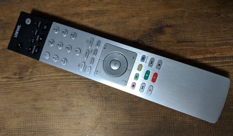 De Loewe-remote is al heel wat jaren nauwelijks veranderd. Zijn gesatineerd metalen afwerking geeft hem een erg luxueus uiterlijk. Hij ligt uitstekend in de hand en voelt erg fijn aan in gebruik. De ietwat kleine toetsen storen niet echt omdat ze ruim uit elkaar liggen. De kans dat je per ongeluk een foute toets in drukt is vrij klein. De layout is goed, met onderaan een aparte set afspeeltoetsen. Enkel de ‘Back’ toets verdient een betere (wat meer prominente) plaats, nu staat hij enigszins verloren tussen drie andere toetsen.