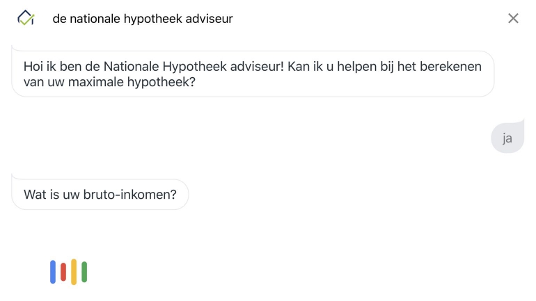 Met de Actions voor de Google Assistent en Google Home kun je ook praten met diverse zakelijke diensten, waaronder de Nationale Hypotheekadviseur, de Rabobank en Essent. Praat je met de Rabobank dan kun je jouw saldo opvragen (mits gekoppeld en toestemming verleend) en bij Essent kun je zelfs vragen of je geld terugkrijgt aan het einde van het jaar (“Krijg ik geld terug aan het eind van dit jaar?”) of hoeveel energie je de afgelopen week of maand verbruikt hebt (“Hoeveel energie heb ik verbruikt deze week”). De Nationale Hypotheekadviseur kan je vertellen hoeveel jij maximaal kunt lenen, nadat je wat vragen beantwoord hebt.