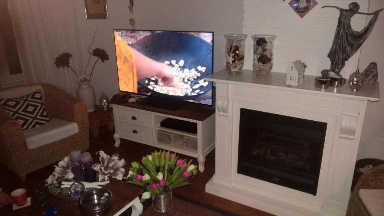 Is er dan toch geen minpuntje? Jawel, maar dat is natuurlijk weer smaak en wat je belangrijk vindt. Ik heb liever een tv wat aan de achterkant mooi in één lijn is voor aan de muur. Voor mij hoeft het niet zo dun mogelijk. Deze tv met zijn dunne bovenkant en zijn dikkere onderkant vind ik aan de muur niet zo mooi. De tv is aan de onderkant tegen de muur en halverwege van de muur af. Ook is de vraag of mijn rechte HDMI-kabels nog wel passen als de tv aan de wand gemonteerd wordt.