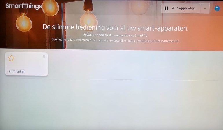 De SmartThings app op je televisie geeft je toegang tot de slimme apparaten in je huis, tenminste als die van Samsung zijn. Zo kan je de beelden van de camera aan de deur bekijken of krijg je een bericht van de wasmachine als die klaar is.