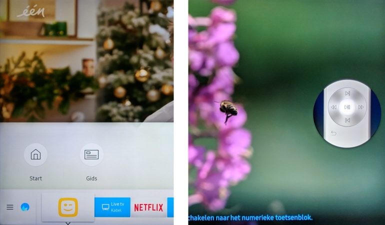 Afhankelijk van het toestel krijg je mogelijkheden in de tweede balk op het startscherm (zoals in het geval van onze Telenet settopbox). Het kan ook dat je extra mogelijkheden oproept via de play/pauze toets, waarmee je de d-pad verandert in een blok afspeeltoetsen. De legende voor de nieuwe functies verschijnt dan rechts op het scherm.