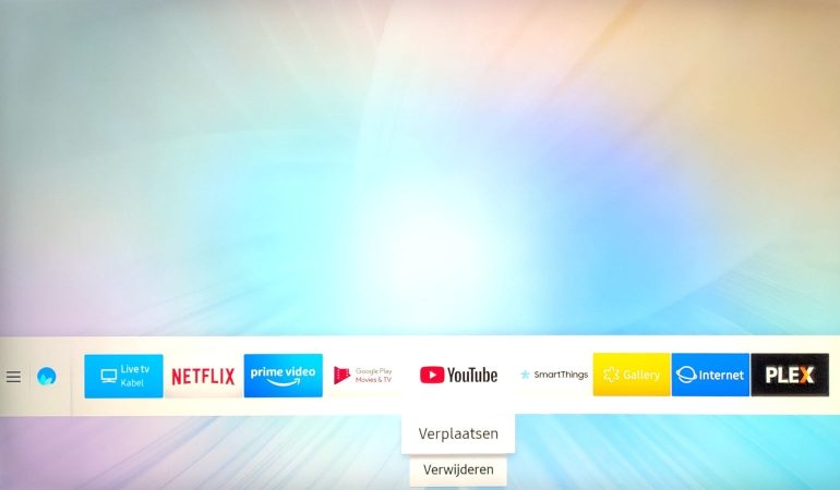 Het startscherm biedt plaats voor tien iconen. Je kunt er meer in plaatsen maar dan moet je verder scrollen. De belangrijkste zaken wil je dan ook vooraan plaatsen. Dat doe je door een icoon te kiezen, bijvoorbeeld YouTube, en vervolgens het pijltje naar de beneden in te drukken (d-pad onderaan). Je krijgt dan de opties: verplaatsen, verwijderen. Kies verplaatsen en verschuif de tegel naar de gewenste plaats, en bevestig met ok.