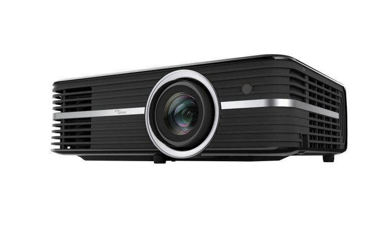 De Optoma is geen opvallende verschijning, hij heeft de typische platte schoendoosvorm van de meeste projectoren. Het ontwerp heeft veel gemeen met de UHD65. Dat betekent dat hij wat meer plaats nodig heeft dan de typische compacte DLP-projectoren. Met dit gewicht en afmetingen kan je hem nog meenemen op verplaatsing, maar dat lijkt ons niet de bedoeling.