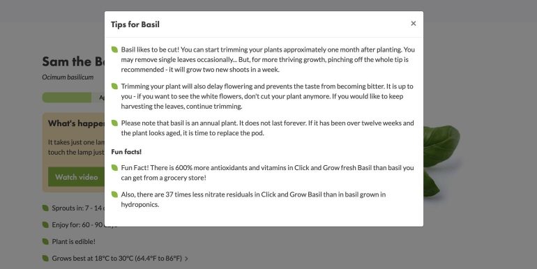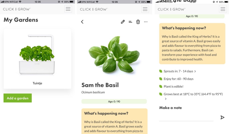 In een overzicht per Smart Garden zie je vervolgens hoeveel dagen oud jouw plantjes zijn en krijg je tips over het onderhoud en het gebruik van de plantjes. Natuurlijk kun je via de app ook nieuwe pods bestellen.