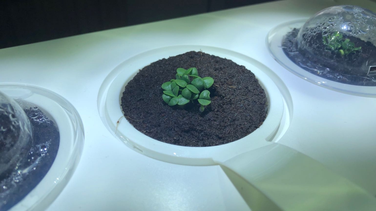 Natuurlijk zijn we meteen met ons moestuintje aan de slag gegaan toen de verpakking geopend werd en alles in elkaar gezet was. We zijn begonnen met de meegeleverde basilicum pods, die eenvoudig in de betreffende bakjes onder de lamp geplaatst kunnen worden. Doorzichtige bolletjes er overheen, water bijgevuld en stekker in het stopcontact. De lampen springen direct aan en nu is het wachten op babyplantjes.
