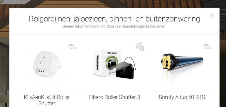 Producten slim kopen kan bij diverse partijen, die we hieronder bespreken. Je koopt dan een product (een rolluik of een rolgordijn bijvoorbeeld) dat reeds draadloos in verbinding staan met een hub en daardoor middels een app bediend kan worden. De app biedt dan weer mogelijkheden om de zonwering of raamdecoratie op bepaalde tijden te openen of te sluiten, of zelfs geavanceerde scenario’s aan te maken op basis van tijd, het weer of de status van andere sensoren in huis.