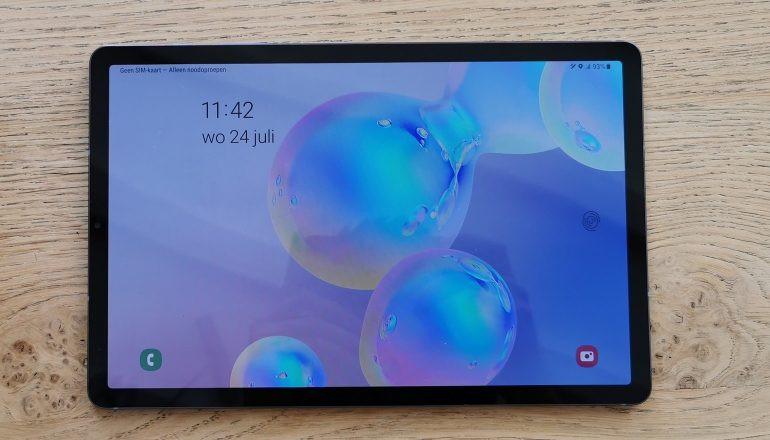 De tablet straalt aan alle kanten uit dat we te maken hebben met een premium-model. De tablet is voorzien van een zeer stevige behuizing en is dunner en lichter dan ooit. Doordat dit model dunner dan ooit is missen we wel een 3,5mm-koptelefoonaansluiting. Volgens Samsung is er simpelweg geen plek meer voor. Onder het scherm vinden we tevens een vingerafdruksensor, zoals je deze ook kent van de Galaxy S10. Deze vingerafdruksensor vind je, in de horizontale stand, aan de rechterkant van het scherm.