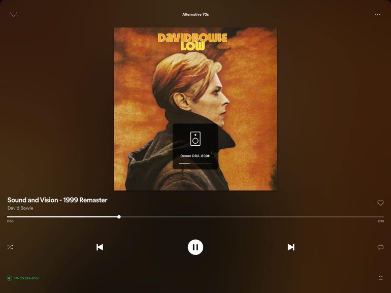 AV-receivers zijn tegenwoordig echte streamingmonsters, met talloze manieren om je muziek draadloos af te spelen. De DRA-800H komt met alle opties die ook bij de surroundreceivers present zijn. Qua streaming wordt alles afgehandeld door het HEOS-platform in de receiver. HEOS is de streamingoplossing die Denon (en Marantz) inbouwt in zijn toestellen, maar is ook de naam die hangt een reeks draadloze speakers en soundbars. Dankzij HEOS kun je twee dingen via de HEOS-app: muziek afspelen via allerlei streamingbronnen en HEOS-toestellen apart en samen bedienen. Je kunt dus bijvoorbeeld een internetradiostation simultaan op de DRA-800H en een HEOS-speaker in de volgende kamer afspelen. Of je kinderen kijken tv met geluid via de DRA-800H, terwijl jij kookt met een Spotify-playlist in de keuken.