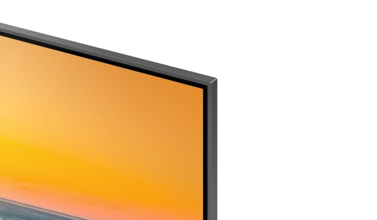 De Q85R sluit met zijn design aan op de modellen van vorig jaar. Het scherm kreeg een dun lichtmetalen kader van ongeveer vijf millimeter. Van opzij is het minder breed dan op de Q90R, en het geeft het scherm een mooi, luxe gevoel.