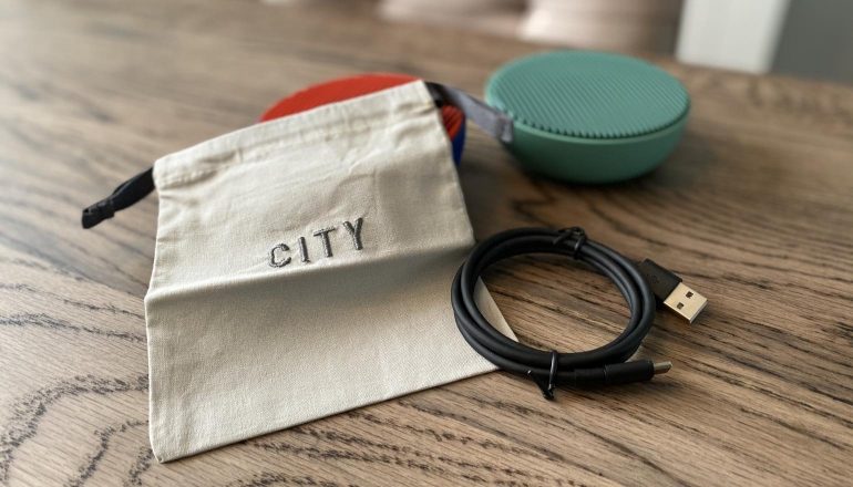 Opladen gaat via de USB-C-poort, waarop ook nog een extern USB-afspeelapparaat aangesloten kan worden. Je kunt de City overal gebruiken, maar houd er rekening mee dat de speaker een IPX4-certificaat heeft, wat betekent dat hij tegen een spatje water kan maar niet ondergedompeld kan worden. Ook kan de speaker tegen een licht stootje, mar verwacht niet dat een harde val overleefd wordt. Al met al komt de City met een nette afwerking en een stijlvol design.