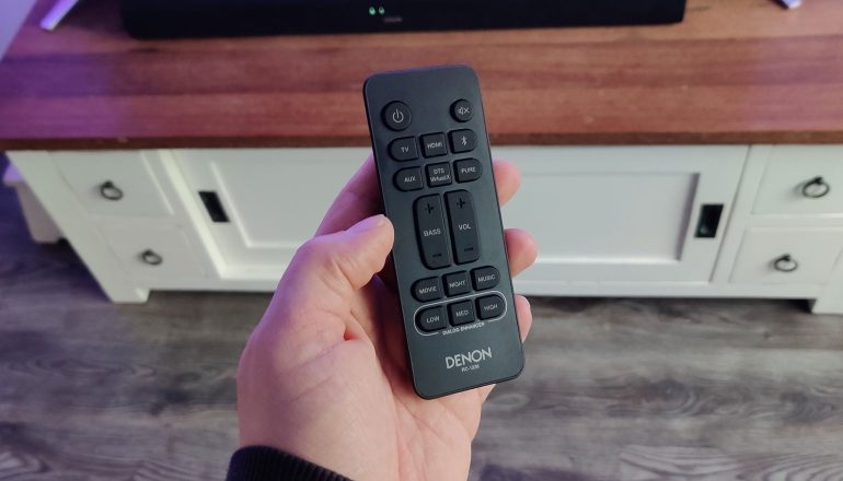 In dit geval stond de Denon DHT-S216 niet in de muziekmodus. Dat is één van de modi die je tot je beschikking hebt, waarmee je heel gemakkelijk de geluidsweergave kunt instellen op basis van de content waar je naar kijkt of luistert. Er is ook een filmmodus, waarmee er meer nadruk gelegd wordt op bas en stemmen, en een avondmodus, waarmee de algehele output van het geluid bewust beperkt wordt. Dat kan handig zijn om bijvoorbeeld de kinderen niet wakker te maken in de avond. Of om de buren wat rust te gunnen.