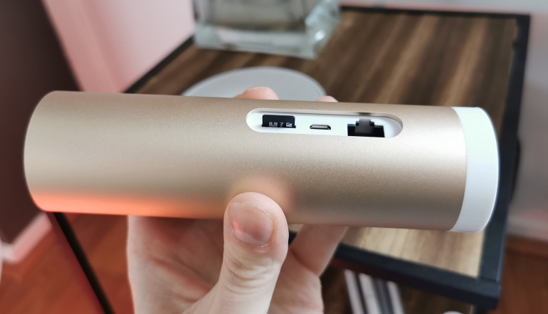 Wat ten eerste opvalt is het uiterlijk van de Welcome Camera. Netatmo doet daadwerkelijk iets anders met het uiterlijk van een beveiligingscamera ten opzichte van de concurrentie. De Welcome Camera heeft een unieke aluminium behuizing in een kokervorm. Hierdoor valt de camera niet op in je interieur. Sterker nog, de meeste mensen zullen de Welcome Camera ook helemaal niet herkennen als camera. De vorm komt echter wel met een keerzijde. De smalle en hoge koker kun je niet ophangen, maar enkel ergens opzetten. Daarnaast is de camera niet draadloos, maar sluit je deze via de micro-usb-aansluiting achterop het model aan op het stopcontact. Het is dan ook jammer dan de stroomkabel vrij kort is. Het feit dat je de camera niet kunt ophangen en de korte stroomkabel zorgen ervoor dat je helaas niet zo flexibel bent in de plaatsing van deze camera.