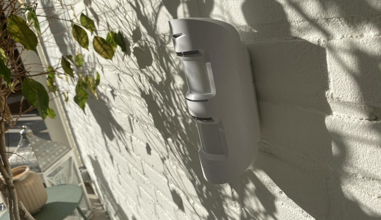 Afgezien van de hub is de MotionProtect Outdoor het duurste (en grootste) product in ons alarmsysteem, en dat heeft een reden. Deze sensor is namelijk speciaal voor buiten gemaakt, en komt met twee PIR-sensoren die op een geavanceerde manier samenwerken om te zien wat er gebeurt. De onderste sensor houdt alles tot ongeveer een meter hoogte in de gaten, terwijl de bovenste sensor alles daarboven meepakt. Alleen wanneer de twee sensoren samen iets zien bewegen dat ook nog eens op dezelfde manier beweegt, dan wordt er alarm geslagen. Een bewegende boom die door de ene sensor gezien wordt maar niet door de andere wordt dus genegeerd. Een huisdier dat tot 80 centimeter hoogte rondloopt en dus door maar één sensor gezien wordt geeft ook geen alarm. Dit werkt nagenoeg perfect. Nagenoeg omdat de kat tijdens het rondlopen compleet genegeerd wordt, maar toen de kat op tafel sprong en daardoor precies in het zichtveld van beide sensoren kwam ging het alarm wel af. De plaatsing van deze MotionProtect Outdoor komt dus heel nauw, en de werking is afhankelijk van wat er in je tuin staat en hoe dieren en objecten zich hierin bewegen. Het is dus een kwestie van uitproberen en zo de optimale plaatsing bepalen. Overigens beschikt deze sensor ook over een antimasking-functie waardoor je een melding krijgt (of het alarm gaat af) wanneer iemand iets voor de sensor hangt. Mocht iemand de sensor van de muur trekken, ook dan kan het alarm afgaan of krijg je een melding.