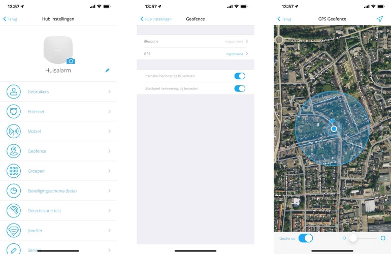 Je kunt het alarm handmatig bedienen, met de app, de knop, de remote of de KeyPad. Je kunt echter ook voor geofencing kiezen. Middels deze optie geef je in de app aan binnen welke straal rondom jouw huis je een melding wilt ontvangen. Kies je bijvoorbeeld voor 500 meter, dan krijg je zodra je buiten deze straal gaat de melding op je smartphone (of smartwatch) met de vraag of je het alarm wilt activeren. Staat het alarm aan en kom je binnen die straal, dan krijg je de melding met de vraag of je het alarm wilt deactiveren. Het alarm wordt om beveiligingsredenen niet automatisch geactiveerd of gedeactiveerd. Dit hebben we bij andere alarmsystemen wel gezien maar dit werkte zelden perfect. Wat ons betreft dus een goede keuze.