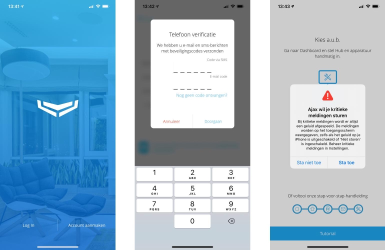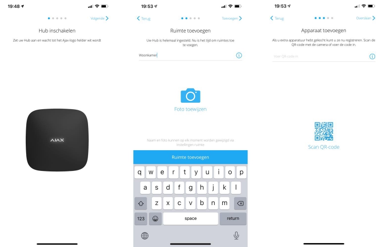 Voordat je begint met installeren en monteren heb je de app nodig. De AJAX-app is gratis te downloaden voor iOS en Android, en na het downloaden is het een kwestie van een account aanmaken. Eenmaal gedaan wordt je gelijk door het proces van het toevoegen van een hub geloodst. De gehele app is in perfect Nederlands, maar houdt er rekening mee dat je via de app de handleidingen van de producten moet lezen en die zijn in het engels.