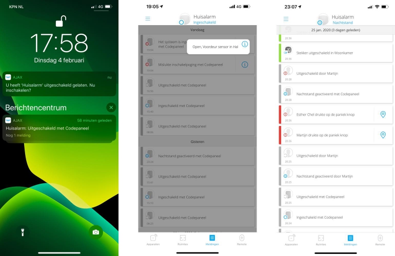 Tot slot de notificaties, wat een belangrijk onderdeel van een alarmsysteem is. Op dit vlak alleen maar lof voor het AJAX Systems alarmsysteem. Notificaties zijn kort maar krachtig, verschijnen zeer snel op je smartphone en bevatten voldoende informatie om direct te weten wat er gaande is. Ook wanneer je geofencing gebruikt krijg je zodra je de straal binnenkomt meteen een melding met de vraag of je het alarm wilt inschakelen. Klik je op de notificatie dan kom je direct in de app om het alarm te ontgrendelen. We hebben geen loze of foutieve meldingen gehad, 100 procent van de meldingen is binnen 1-3 seconden op de smartphone verschenen en alle meldingen waren duidelijk.